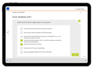 Durch den Einsatz des E-Learnings KI-Anwendungen sicher einsetzen können Sie Ihre Mitarbeitenden interaktiv und einfach für den verantwortungsvollen Umgang mit KI-Anwendungen sensibilisieren. Dabei lernen sie sowohl die Möglichkeiten als auch die Risiken der Künstlichen Intelligenz kennen und können diese Anwendungen souverän und sicher nutzen. Sie werden darin geschult, wie sie geeignete Prompts formulieren, um nützliche Ergebnisse zu erzielen, und erfahren, worauf sie in Bezug auf personenbezogene Daten, Geschäftsgeheimnisse, urheberrechtlich geschützte Werke und andere sensible Informationen achten müssen.