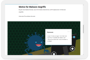 Der interaktive E-Learning-Kurs Malware- und Ransomware-Attacken erfolgreich abwehren vermittelt das notwendige Wissen anschaulich, einprägsam und in kleinen Einheiten.